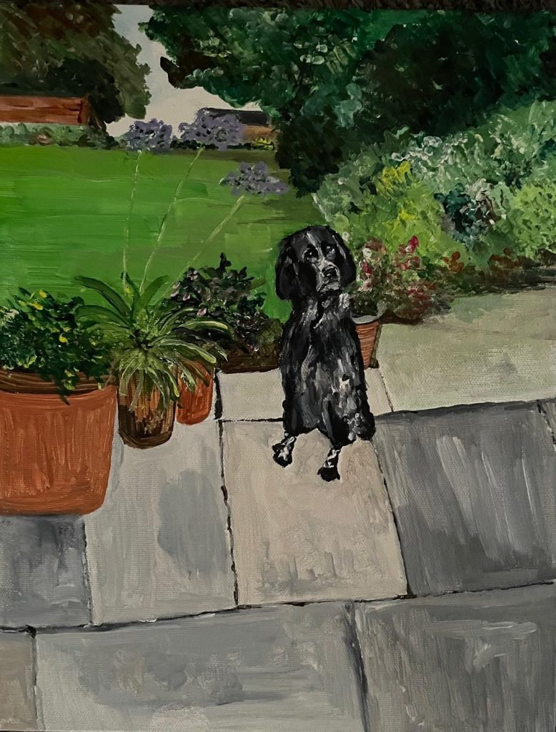 Munsterlander dog in East Sussex Garden